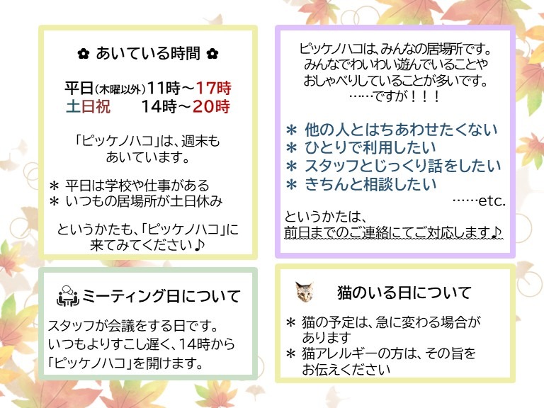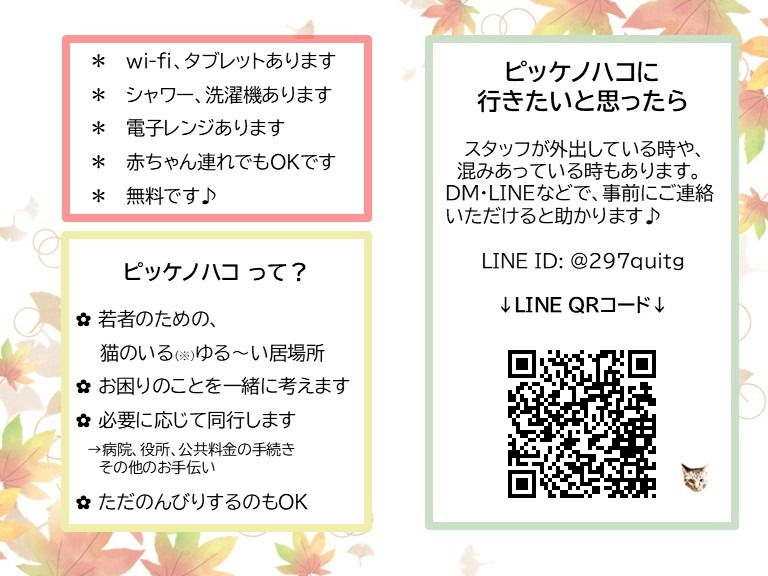 ピッケノハコにきたいという方は、LINEかホームページの「れんらくする」のページからメッセージください🐾