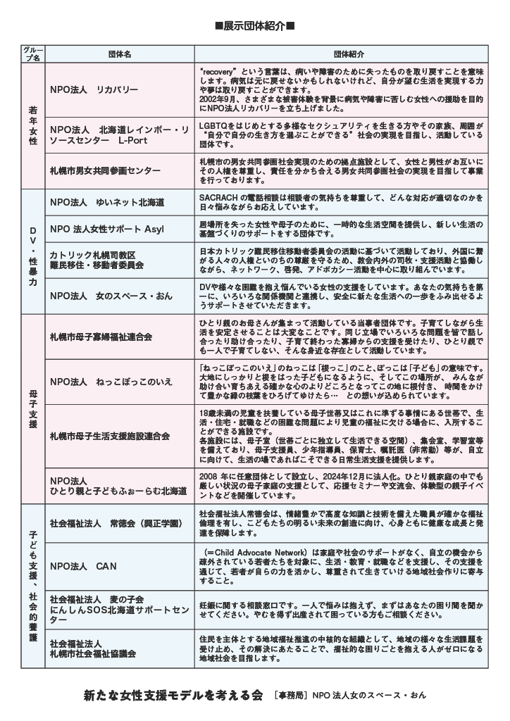 『つながりを力に:民間女性支援団体のネットワーク展示イベント』
